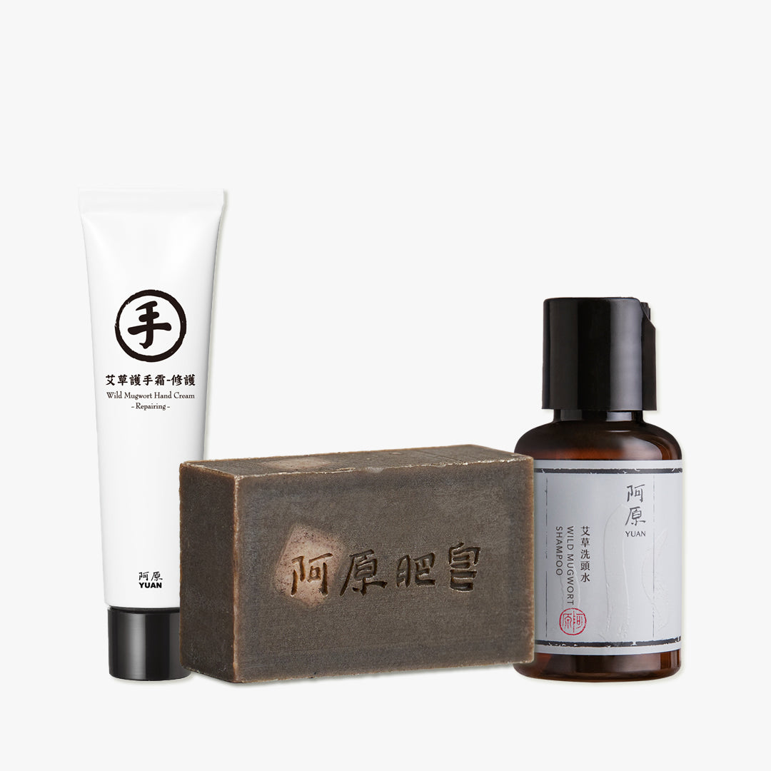 春節艾草袋(ヨモギソープ 115g、ヨモギハンドクリーム30mL、ヨモギシャンプー60mL)